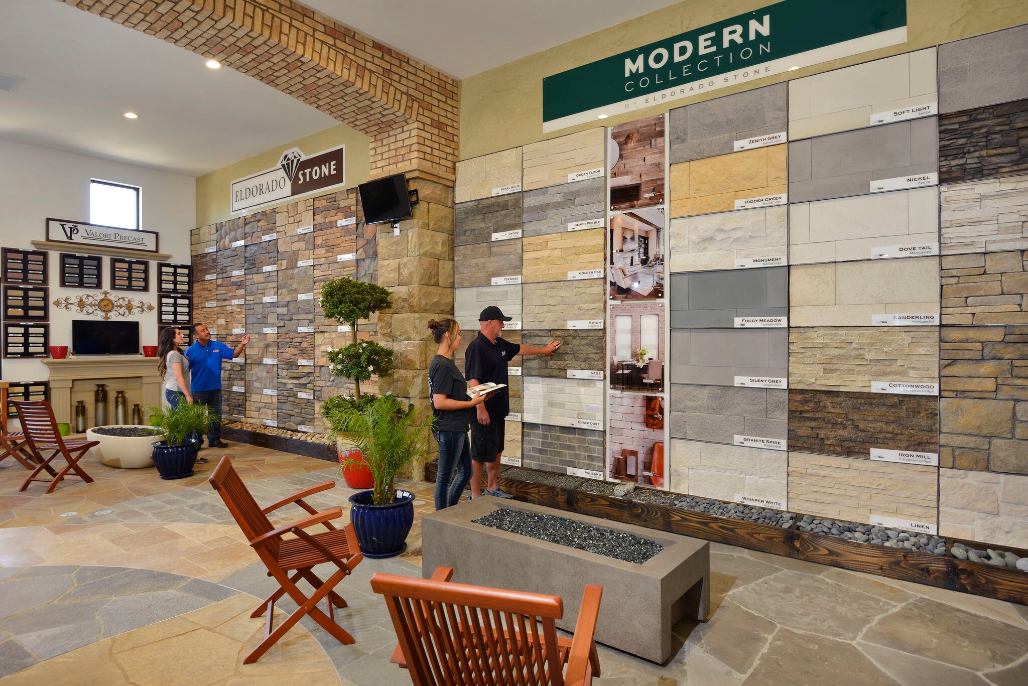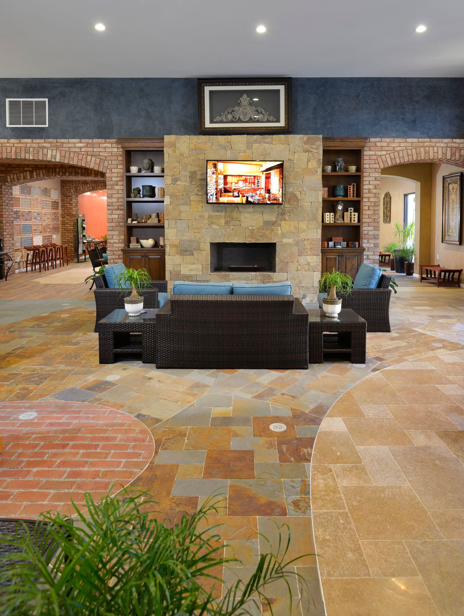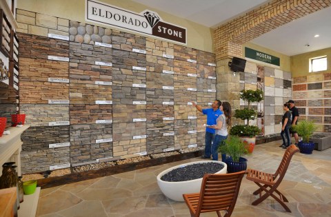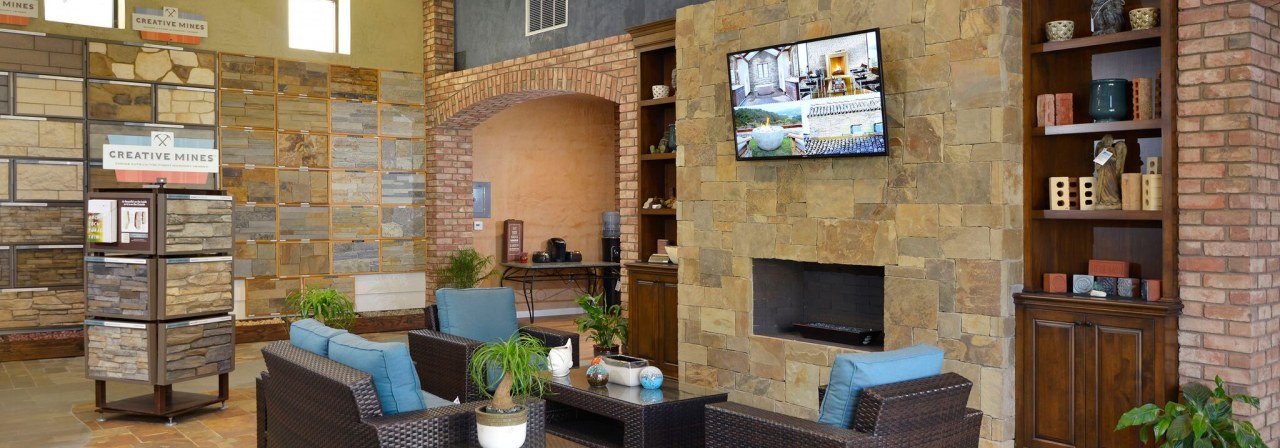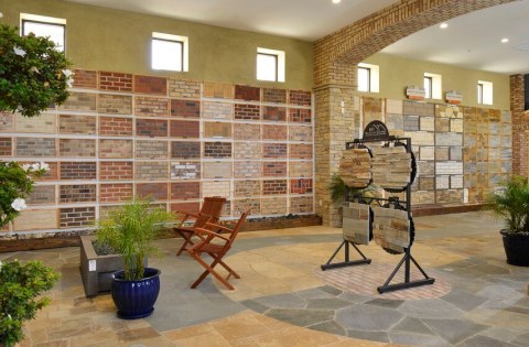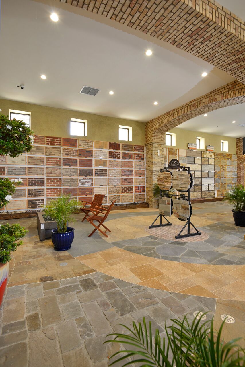 “Product selection made simple” was our primary objective in creating The Thompson Camarillo Design Center. An awesome selection of brick, natural stone & manufactured stone display boards blanket the walls allowing the consumer, builder & designer to review & compare multiple options at a glance. These displays are invaluable, illustrating how the product looks installed and allowing the variance and range of colors inherent to brick and natural stone to be viewed. No more guessing what a pallet of brick or stone will look like as your new fireplace. Outdoor displays feature custom built-in BBQ’s as well as installations of natural stone & architectural precast along with a variety of patterns & colors of interlocking concrete pavers as well as a selection of different stucco finishes & standard colors available.