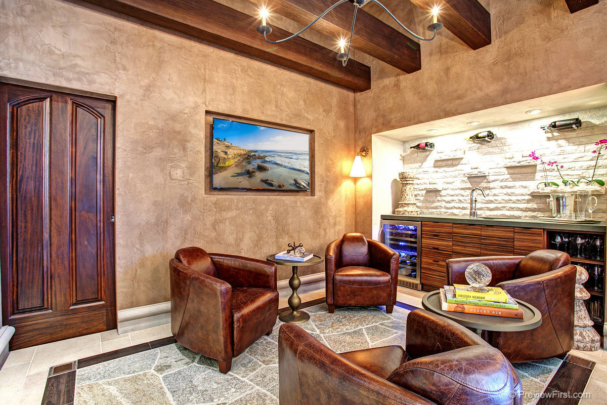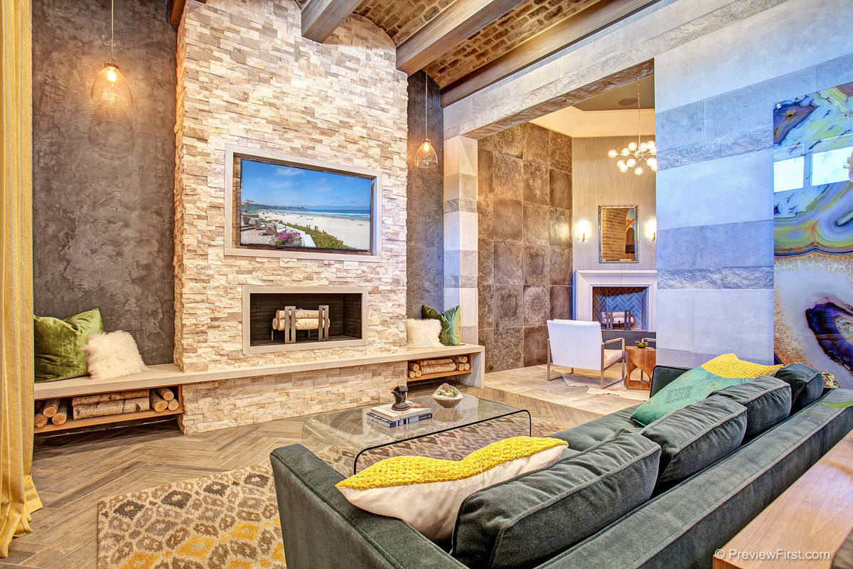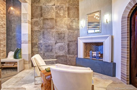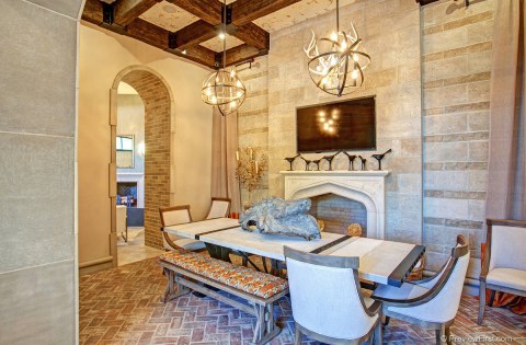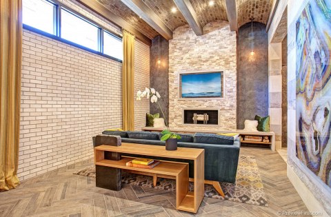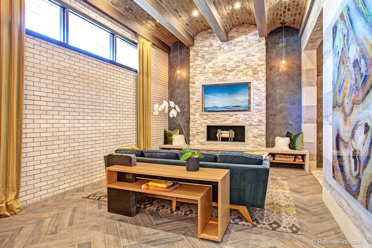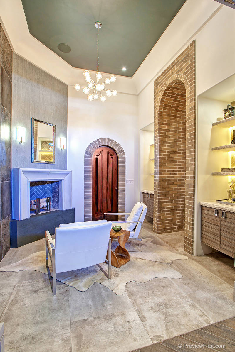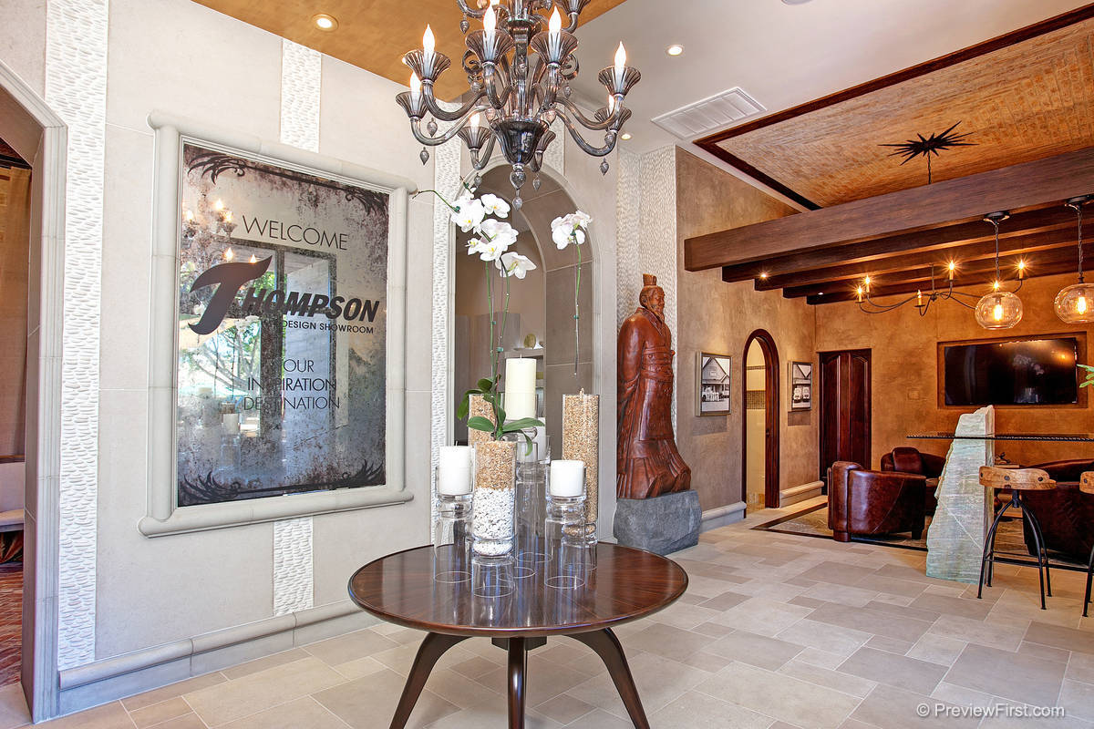 Home, & it’s just that, a home, to Thompson’s newest design showroom, you’re inspired to create beautiful custom & affordable spaces both inside as well as outside your home. A first of its kind for Thompson’s, this working showroom is a 1500 sq ft home featuring brick, natural stone, architectural precast, tile & interior plaster finishes from the ceiling to the floor throughout the 7 spaces including the foyer, living, study, dining, kitchen, bath & bar/lounge. Design Theory Studio & Interior87 along with Fisher Gross Kitchen & Bath Studio made up the interior and kitchen & bath design team responsible for its creation.