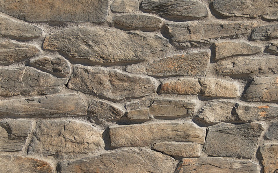 Bison Craft Farmhouse Ledge has blackish-browns, charcoal grays and olive-browns speckled with oxidized rust and ochre accents. Its rustic, informal ledge shapes and sizes have a stone face that is weathered and lightly textured.