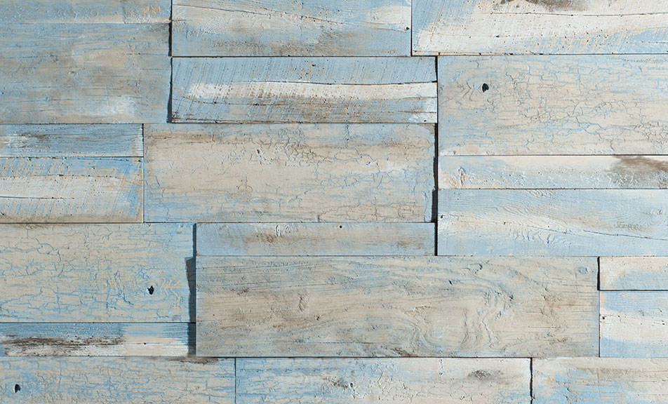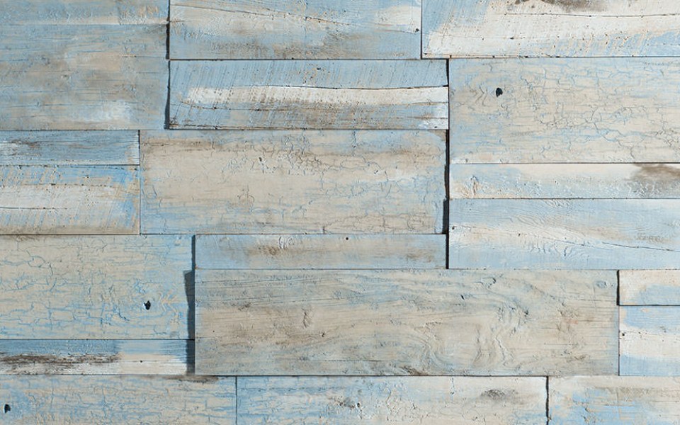 Blueskye Craft Weathered Plank is hand-molded from weathered wooden planks of reclaimed wood. Wind, rain, and sun have evanesced their previously saturated Persian blue and has faded them to a lighter sky blue.