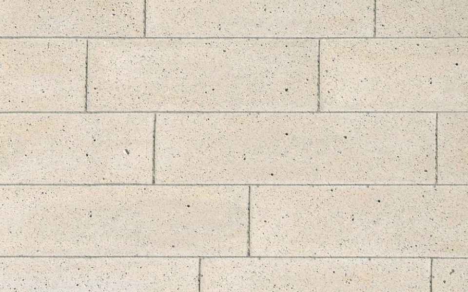 Enlighten Craft Inner Piece is a sawcut smooth-faced, rectilinear veneer with exposed aggregate. Its muted matrix of light warm cream is dappled with small flecks of soft gray and white.