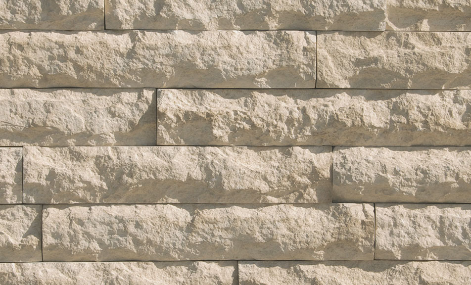 Flax Craft Urban Ledge is a contemporary stone profile with chiseled faces, uniform heights and varying lengths. It is pale and soft in color with hints of coffee-foam cream and wheat brown.