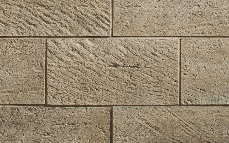 Knapsack Craft Carved Rectangle has a wider range of color and value from khaki-brown to khaki-olive, and warm grays found in Cameron natural stone. It has pronounced grooved lines and a hand-hewn texture that suggests the work of a master artisans.