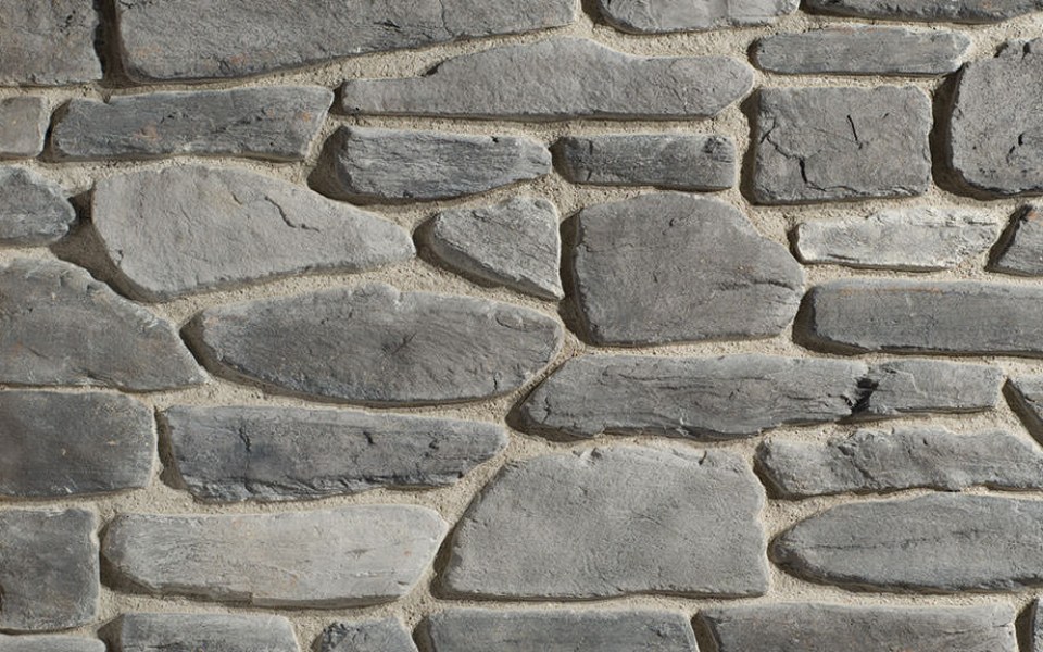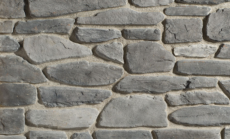Shadowplay Craft Farmhouse Ledge is a rustic, informal ledge with diverse shapes and sizes and a weathered, lightly textured surface. It has a mix of midtone gray and darker gray stones with wider areas of subtle lighter gray highlights.