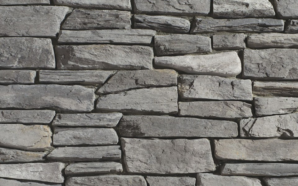 Shadowplay Craft Trail Ledge has rugged coarse faces and straight edges that casts shadows across the stone. Its color palette has cool gray m