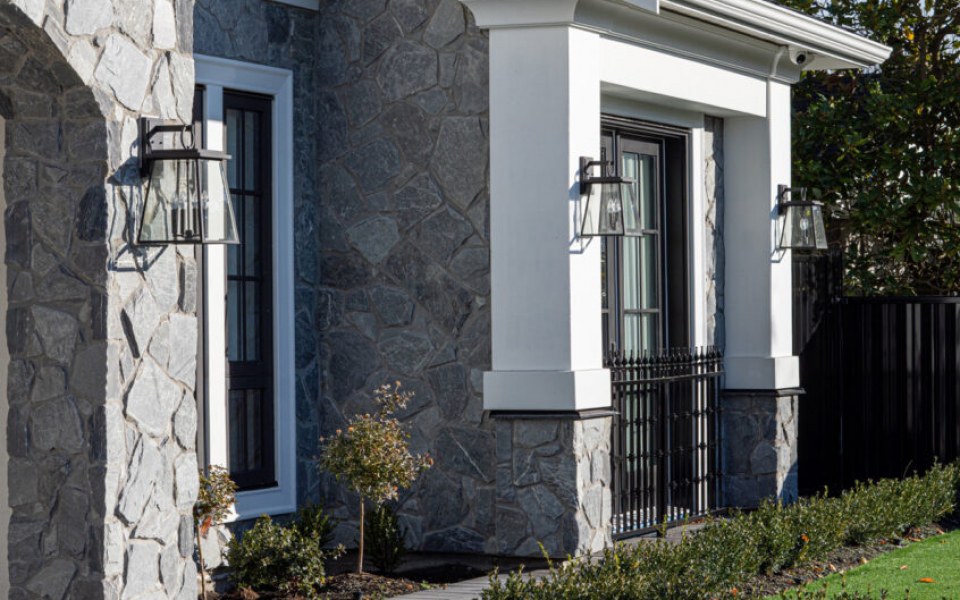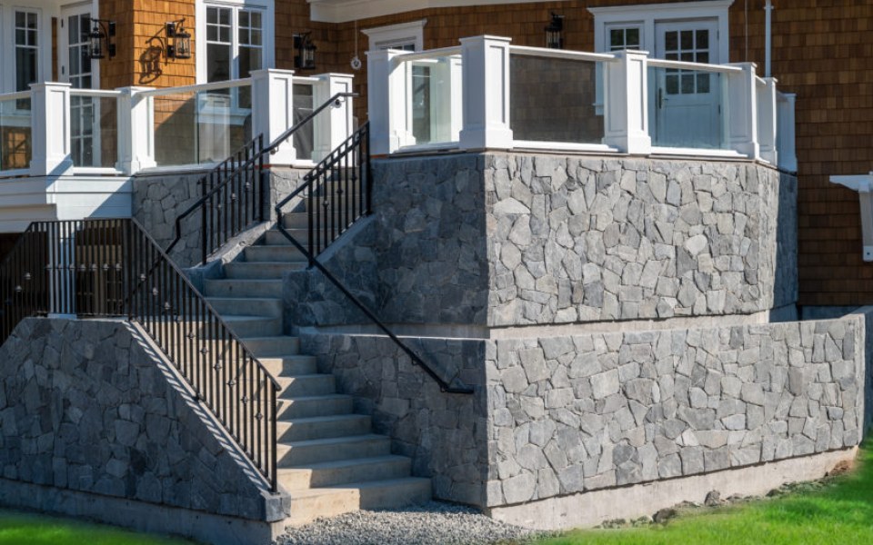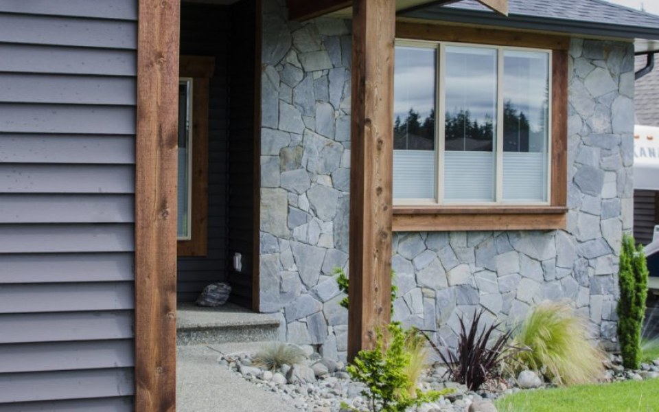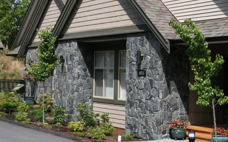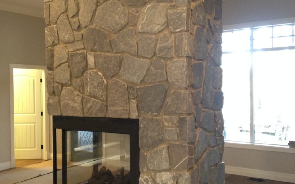 he organic beauty of natural stone veneer makes a statement when used in any home. Our Tofino Sky Field Stone Veneer is an especially good fit for traditional craftsman style or rustic log homes. This profile consists of irregular field stone shapes that look like they've come straight from the mountain. The randomly placed stones have a smooth texture and a cool blue and gray color palette. Tofino Sky uses larger irregular shaped stones from 6" x 6" up to the occasional 10" x 16" piece – due to its larger size it works best for larger areas.