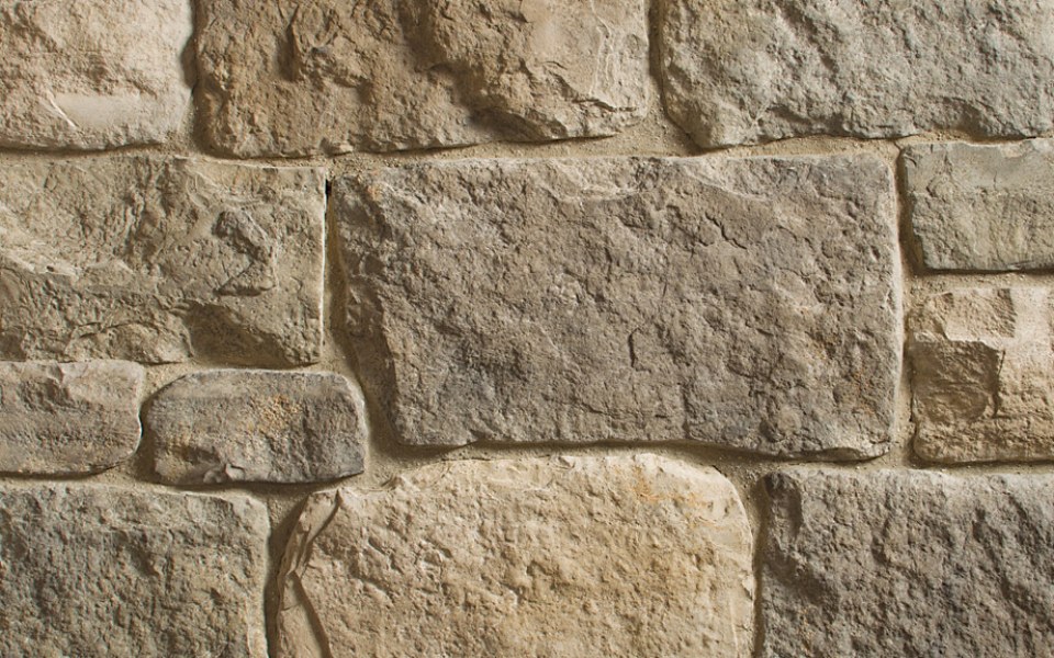 Tortoiseshell Craft Orchard Limestone has a palette that is sepia and olive-brown with hints of bisque and burnt cream. Uneven edges and varied rectangular shapes soften the formality of this ashlar profile.